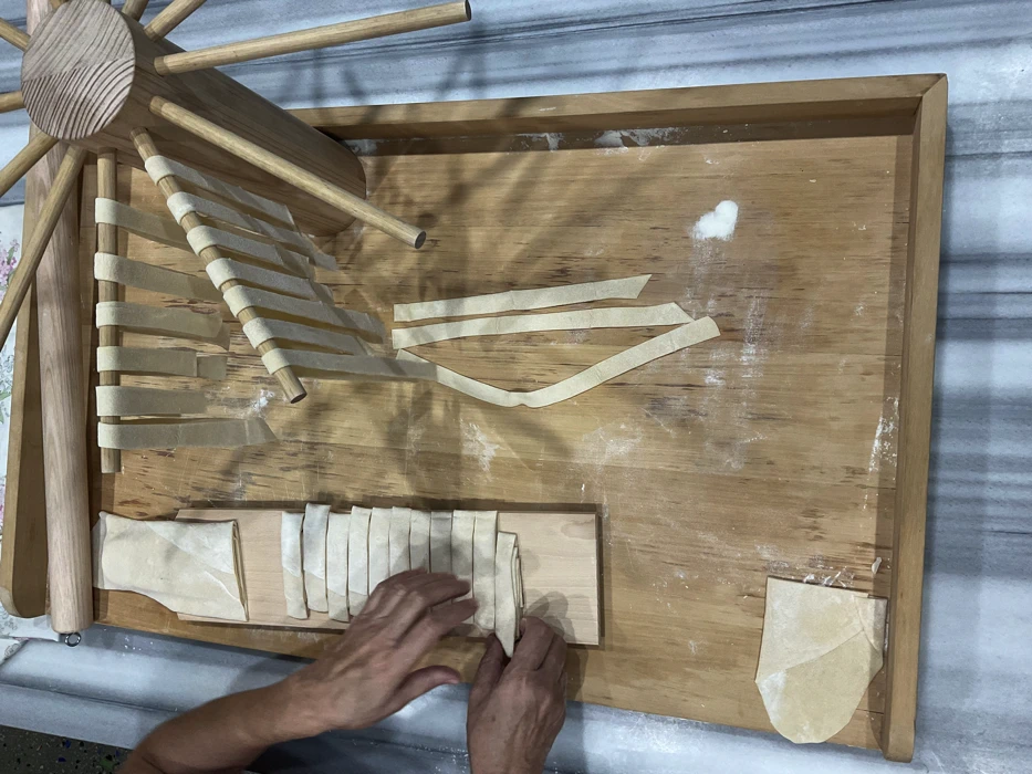 Step 2: Use a rolling pin called a Mattarello to Make Sfoglia, sheets of pasta.