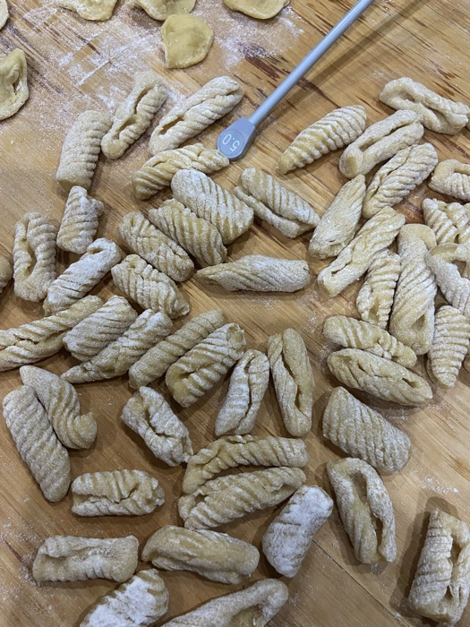 Step 3: Cutting and shaping the pasta by hand, such as orechetti penne and lorighittas. There are many more from different regions of Italy just ask Mamma Giulietta and she will make it happen.